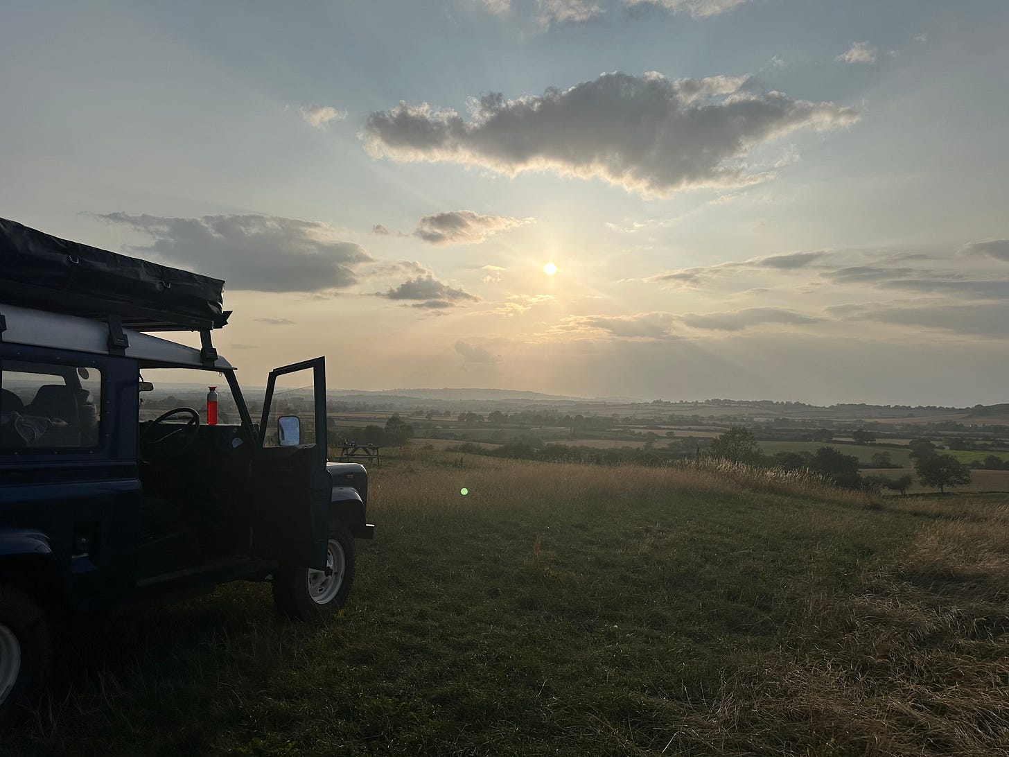 We travelled a thousand miles of back country roads, camping up the length of the country, till we reached Hadrian’s Wall, whereupon we looped back and headed south.