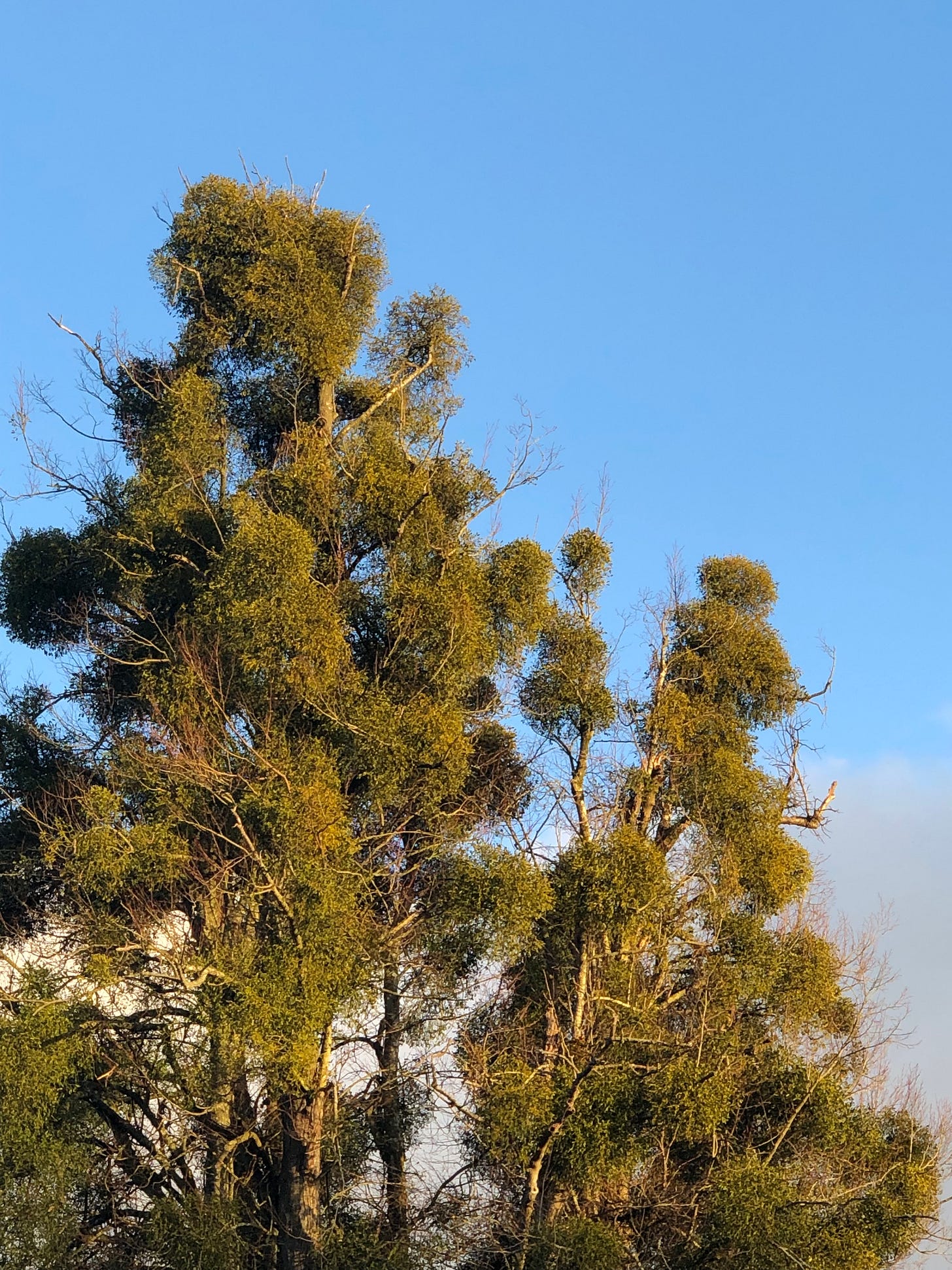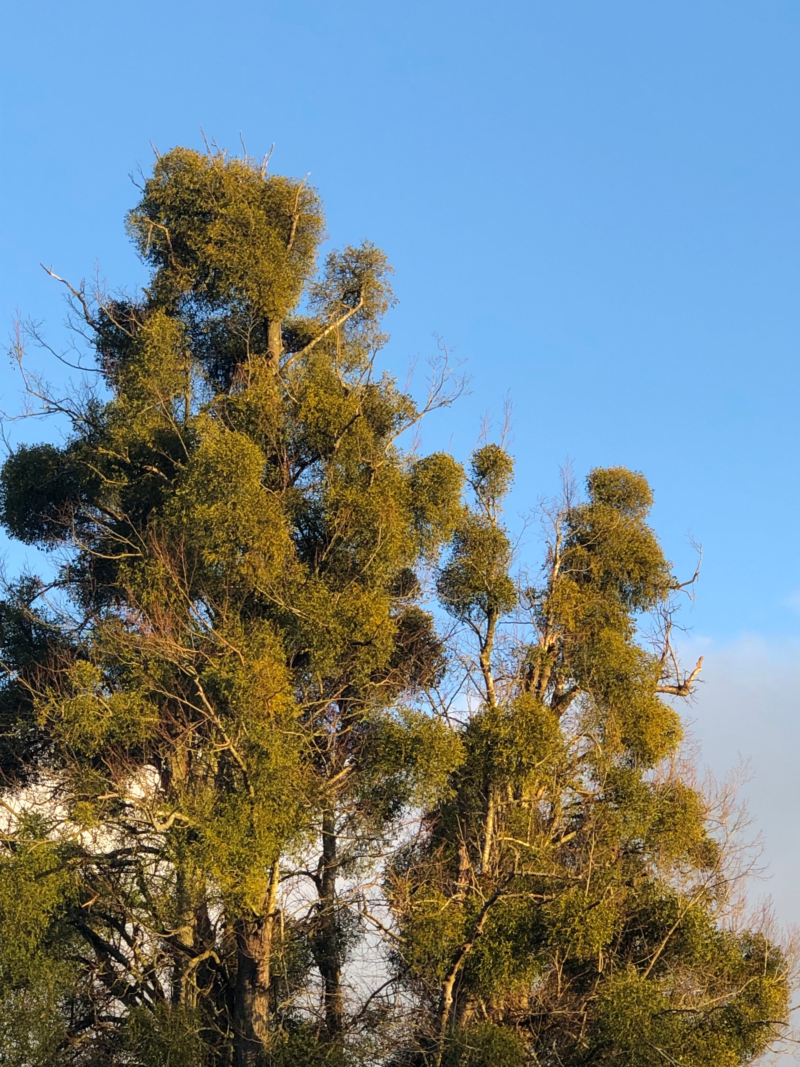 I love how the mistletoe is visible at this time of year, these vibrant green bundles of growth on otherwise bare trees.