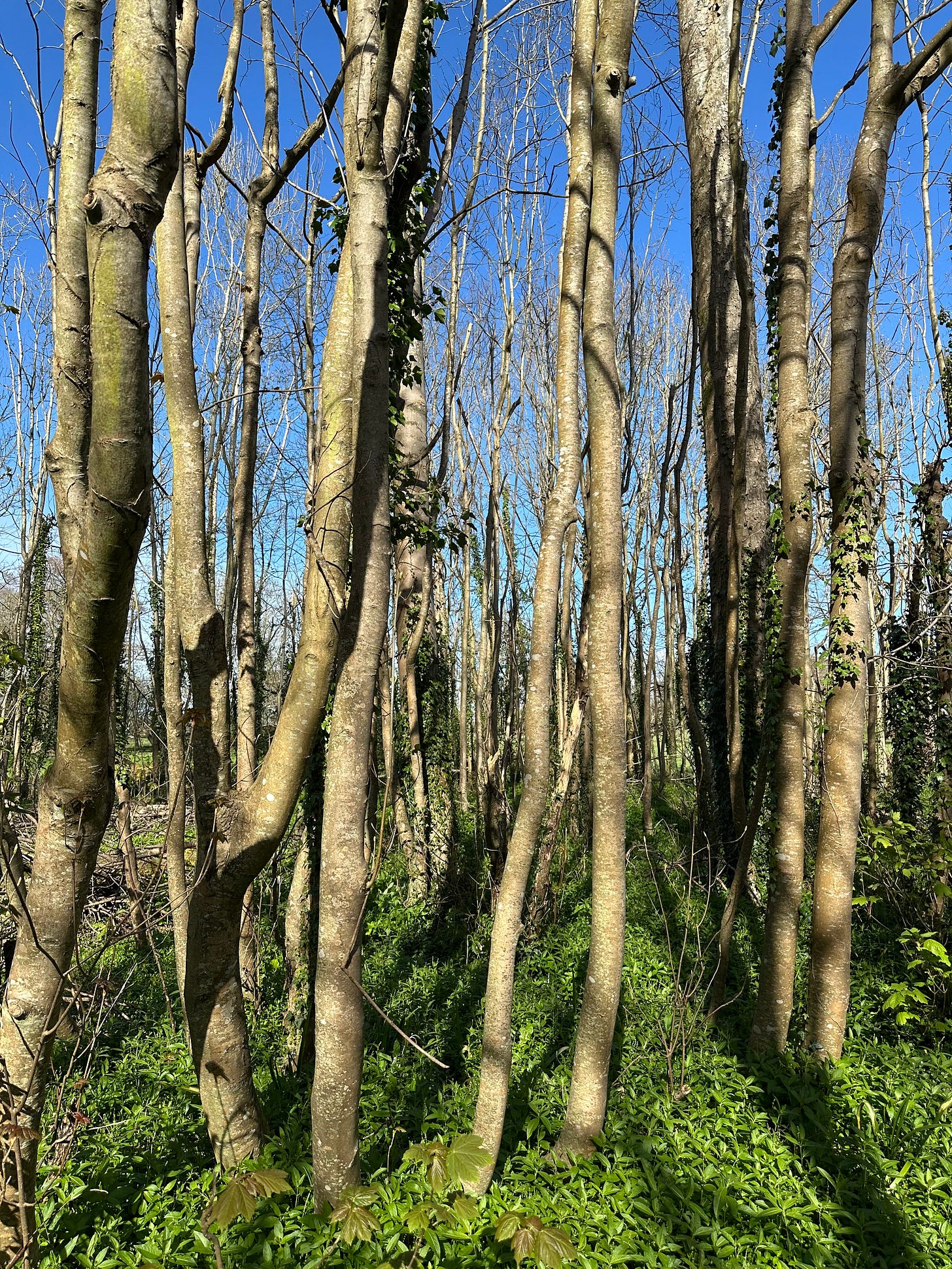 At the top, I left the stump of a branch, and demonstrate to River how this is now a ‘thumb stick’, where you can kind of hook your thumb into the ‘v’ between stick and the stub of the branch, and hang you hand there. He gets it, but prefers to hold it like a walking stick.